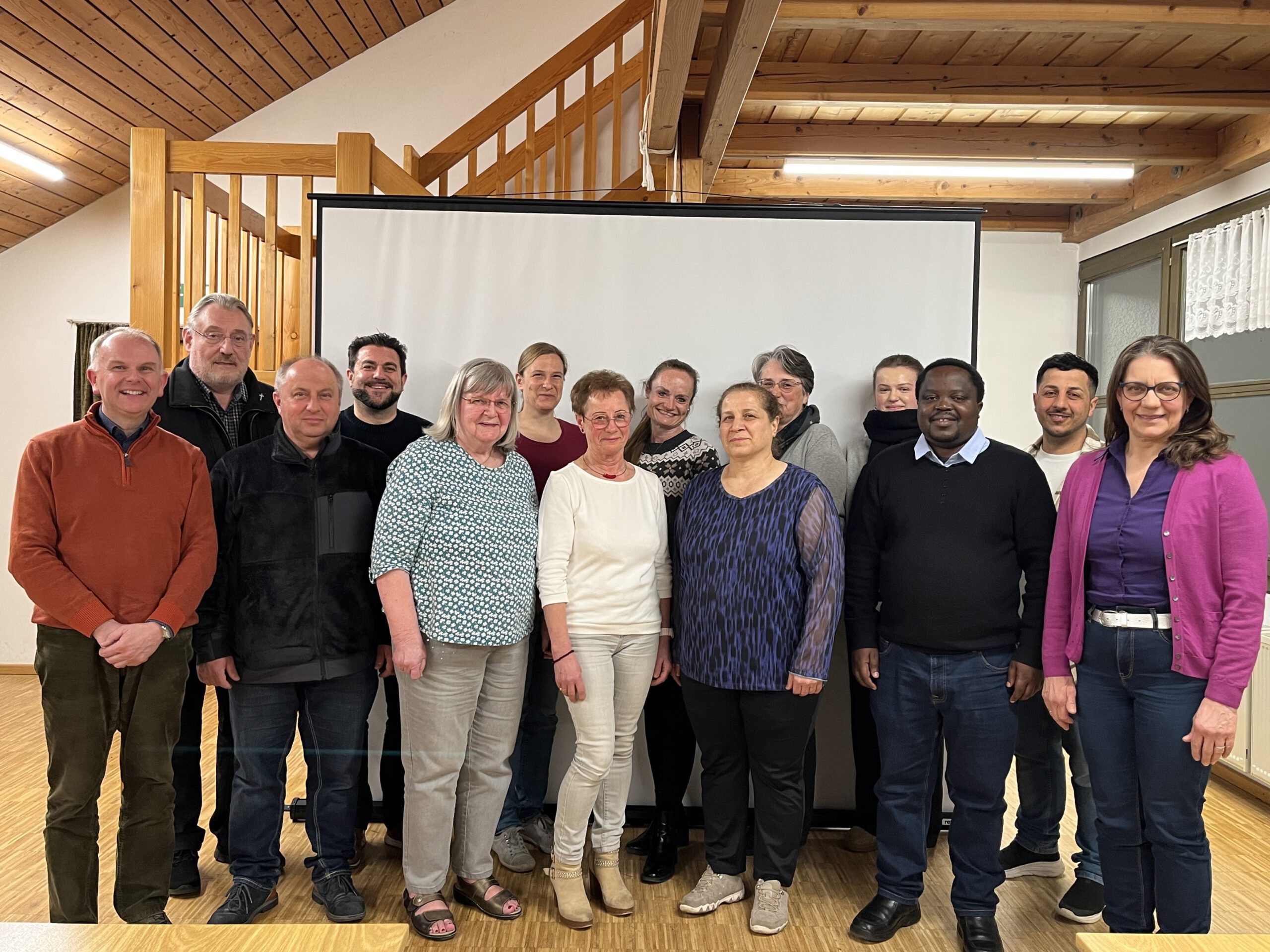 Vordere Reihe (v. l.): Pfr. Josef Vilsmeier (KV-Vorstand), Martina Neubauer (Kirchenpflegerin), Hans Stadler (stellv. Kirchenpfleger),